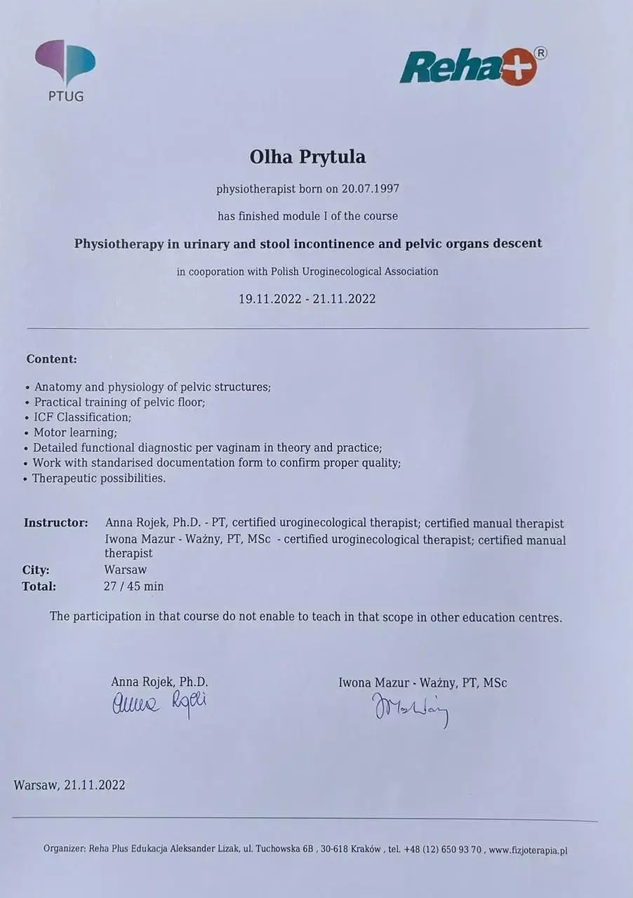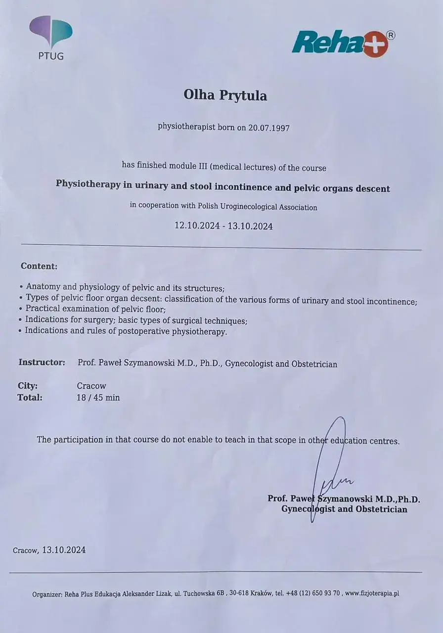 Консультація з досвідченим фізіотерапевтом онлайн: розбір вашої ситуації, рекомендації щодо вправ, відновлення, подальших дій. Підходить для жінок та чоловіків у будь-якому куточку України чи за кордоном.